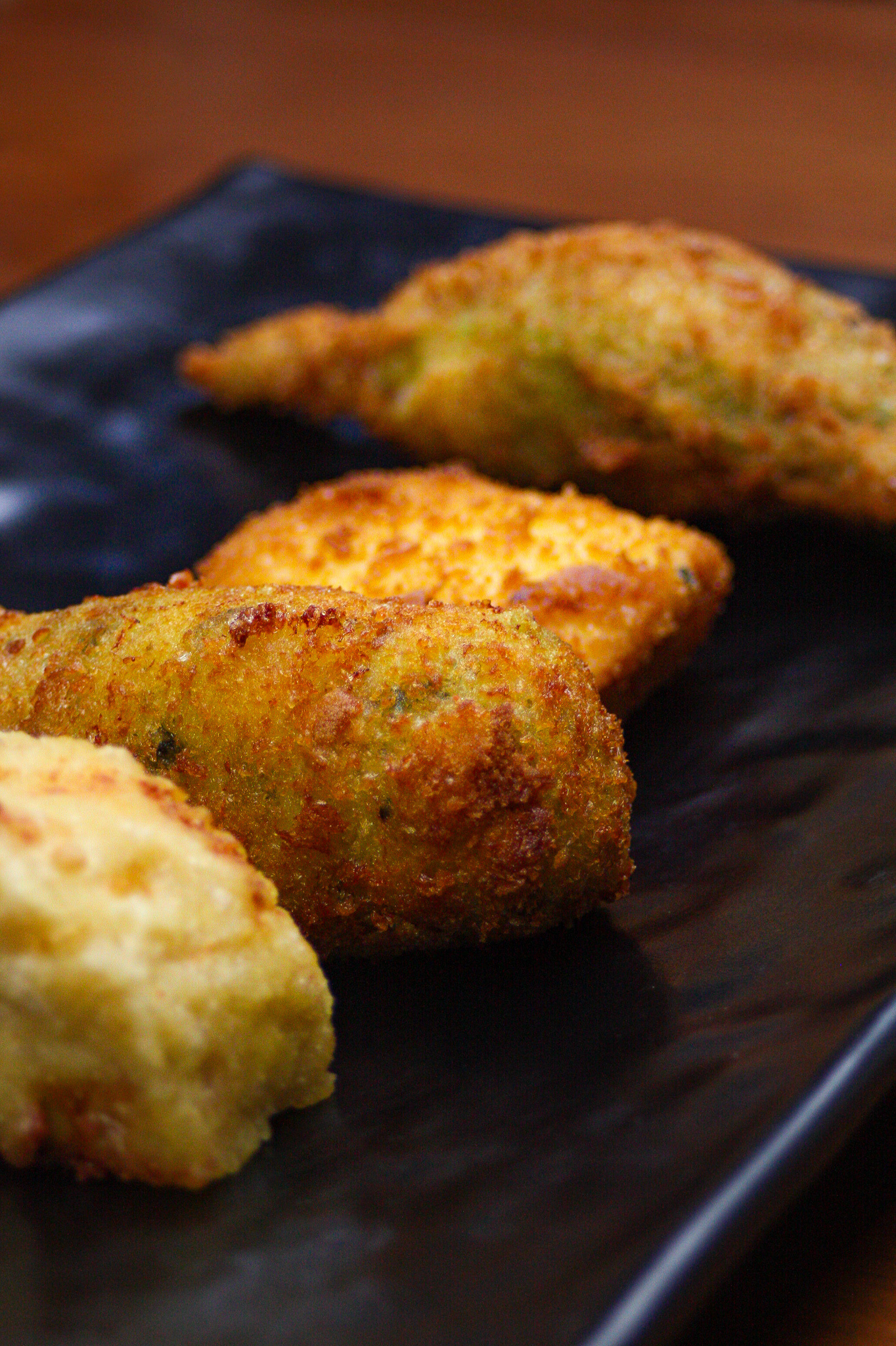 crocchè di patate, salame Napoli, provola, pecorino romano, olio Evo